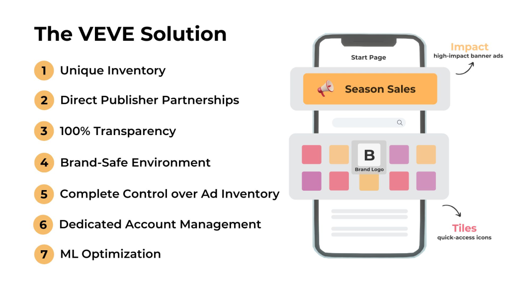 VEVE is a privacy-first, transparent branding and performance solution designed to help you reach untapped audiences. By offering unique inventory, direct publisher relationships, and unparalleled transparency, VEVE empowers brands to take control of their affiliate strategies. Here’s how we do it: